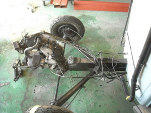 ここからフレームをどのように組んでいくか計画中です。ボディとシャーシの強度を荷台をつけることで成立させていたので、純正と同等の強度を保ちつつインパクトのある荷台にしていければ・・・と考えています。
