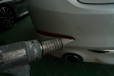 丸ごと一本バンパーを塗装すると未塗装部分と今回の塗装部分の色合いの違いが目立ちにくくなります。同じパネル内で塗装部分と未塗装部分があるとその境目で色の違いが出てしまいます。